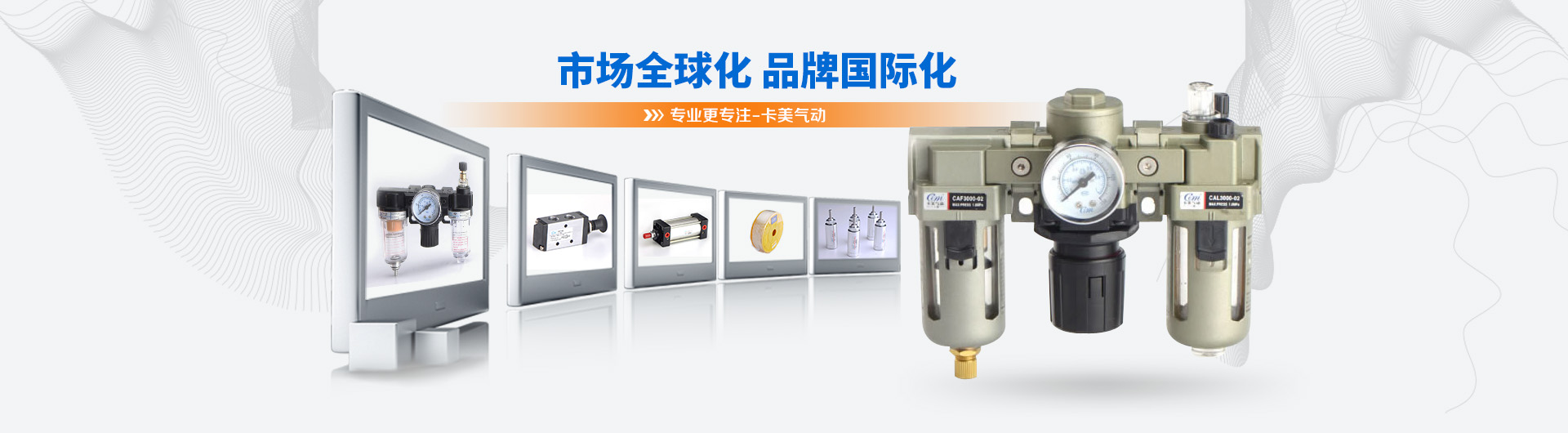 卡美氣動有限公司是一家具有現代化生產規(guī)模的專業(yè)開發(fā)、制造氣動元件的公司。主導產品有:氣源處理系列、標準缸、迷你缸、超薄缸、QGB(大直徑)氣缸、雙軸缸、電磁閥、氣動閥、油壓缸、快速接頭、PU氣管等產品。